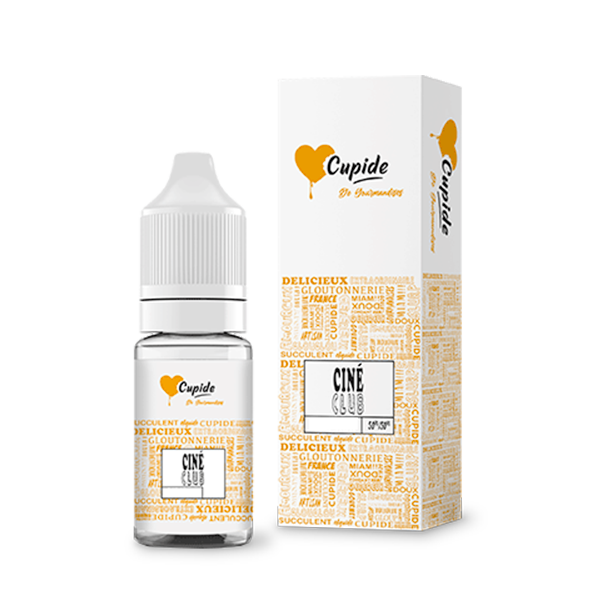 L’e-liquide Ciné Club élaboré par Cupide, au pop-corn dans un format 10mL prêt à vaper disponible en plusieurs taux de nicotine.