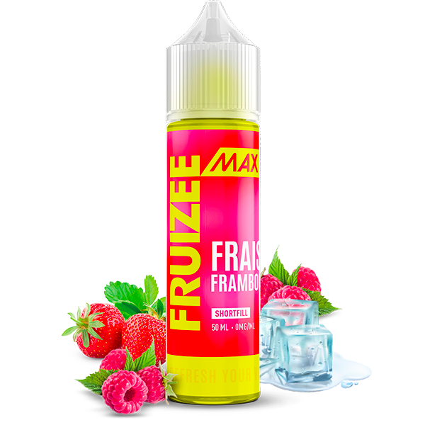 L’e-liquide ultra frais Fraise, Famboise de la gamme Fruizee Max élaboré par Eliquid France, à la triple concentration aromatique dans un format 50mL sans nicotine prêt à vaper ou prêt à booster (jusqu’à 2 boosters de nicotine).