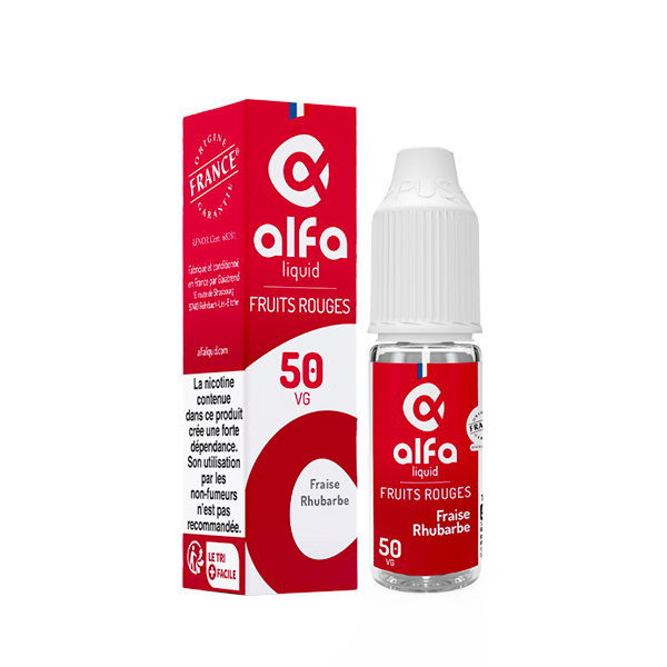 L’e-liquide Fraise Rhubarbe de la gamme Alfaliquid Fruits rouges élaboré par Alfaliquid, associe fraise et rhubarbe dans un format 10mL prêt à vaper disponible en plusieurs taux de nicotine.