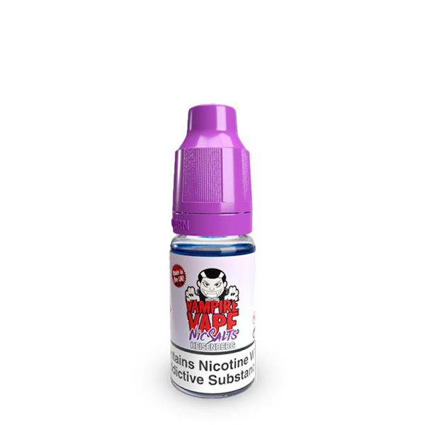 Le sel de nicotine Heisenberg élaboré par Vampire Vape, associe fruits rouges et menthol dans un format 10mL prêt à vaper (10mg/mL ou 20mg/mL de nicotine).