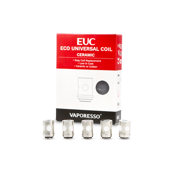 Les Résistances EUC Céramique Coil de Vaporesso sont vendues par boîte de 5 pièces et sont disponibles en différentes puissances.