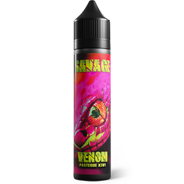 L’e-liquide Venom de la gamme Savage élaboré par Vap’Station, associe pastèque et kiwi dans un format 50mL sans nicotine prêt à vaper ou prêt à booster (jusqu’à 2 boosters de nicotine).