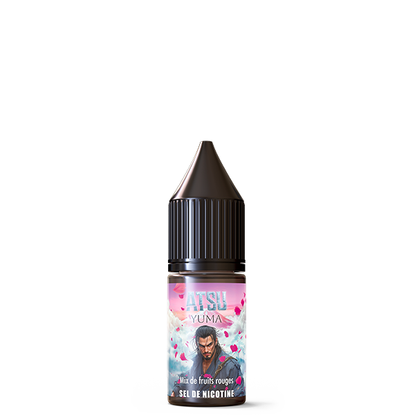 Le sel de nicotine Yuma de la gamme Atsu élaboré par Vap’Station, au mix de fruits rouges dans un format 10mL prêt à vaper (10mg/mL ou 20mg/mL de nicotine).